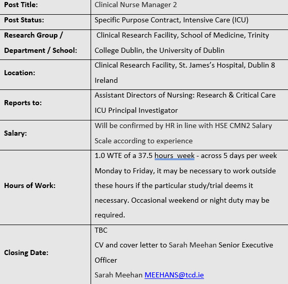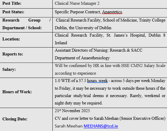 Please find the full job description: https://www.sjhcrf.ie/wp-content/uploads/2025/11/Research-CNM2-2025-2.docx